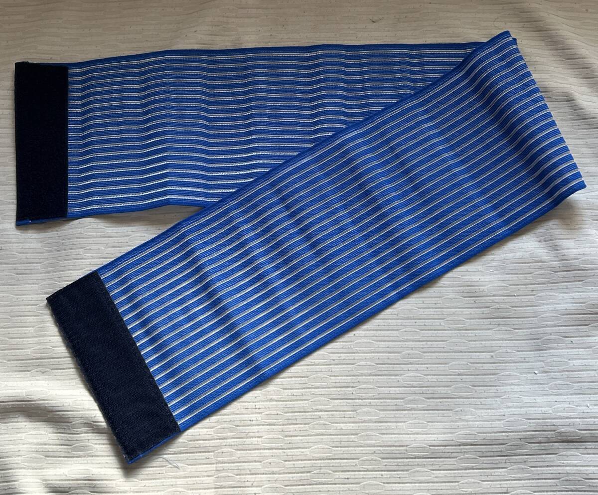 - 腰痛ベルト Lサイズ 作業や外出に便利 長さ107cm ゴム伸縮 ボーダーブルー系....未使用品