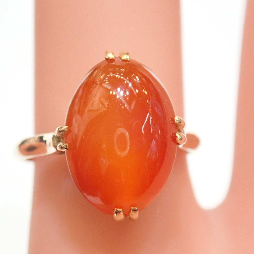 - ■K18 めのうリング■千本透かし(穴透かし)瑪瑙■アンティーク 昭和レトロ■指輪■中古磨き仕上げ■