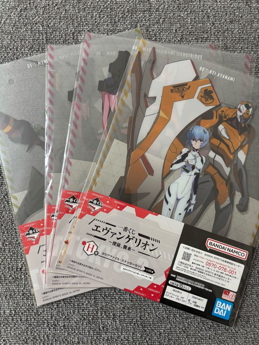 - 一番くじ エヴァンゲリオン ~使徒、襲来~ H賞 クリアファイル ステッカーセット 綾波 レイ 真希波 マリ 新旧プラグスーツ 3種 4枚