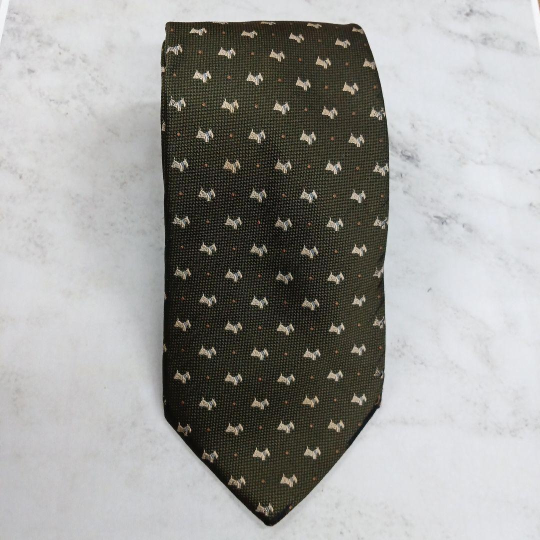 - フェアファクス ネクタイ 緑 犬柄 シルク100 絹 遊び心【n118】