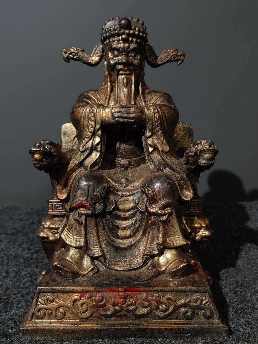 - 【超珍館蔵】銅製 泥金 龍財神像 置物 古賞物 古美術品 稀少珍蔵品