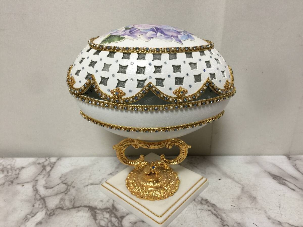 - エッグアート 卵 小物入れ 高さ約16.5cm オブジェ インテリア アンティーク 動作確認済 A2