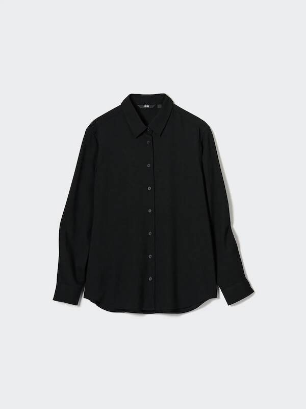 - ユニクロ レーヨンブラウス 長袖 Lサイズ ブラック