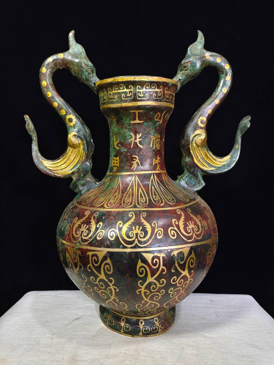 - ▽鴻▽ 西周 青銅製 雙鳳壺 置物 古賞物 中国古玩 中国古美術