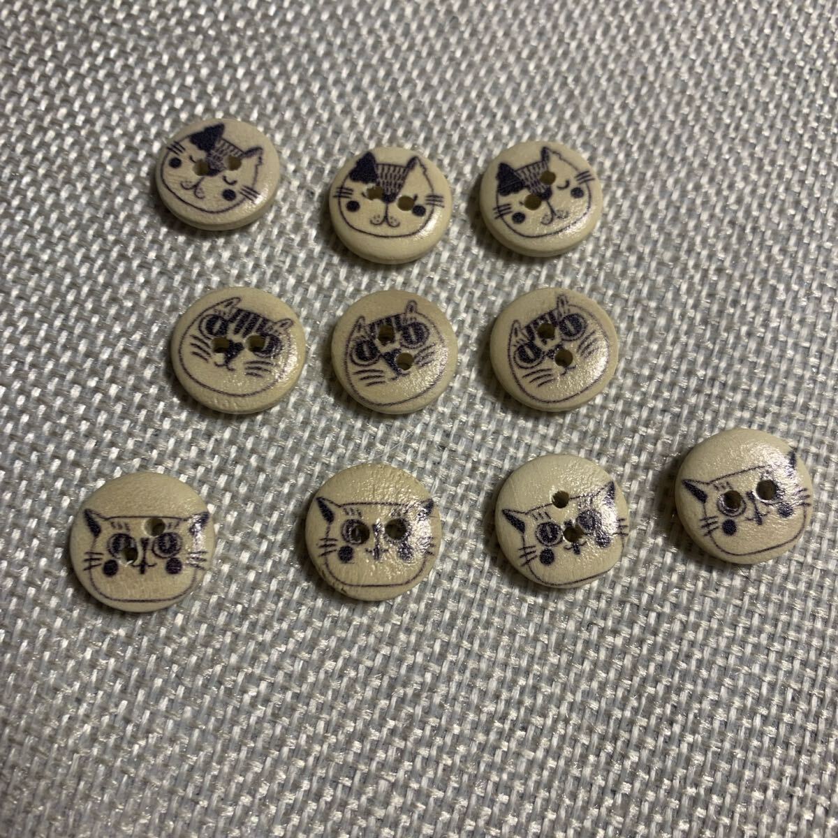 - 猫の木製ボタン 1.5㎝ ハンドメイド 10個セットh