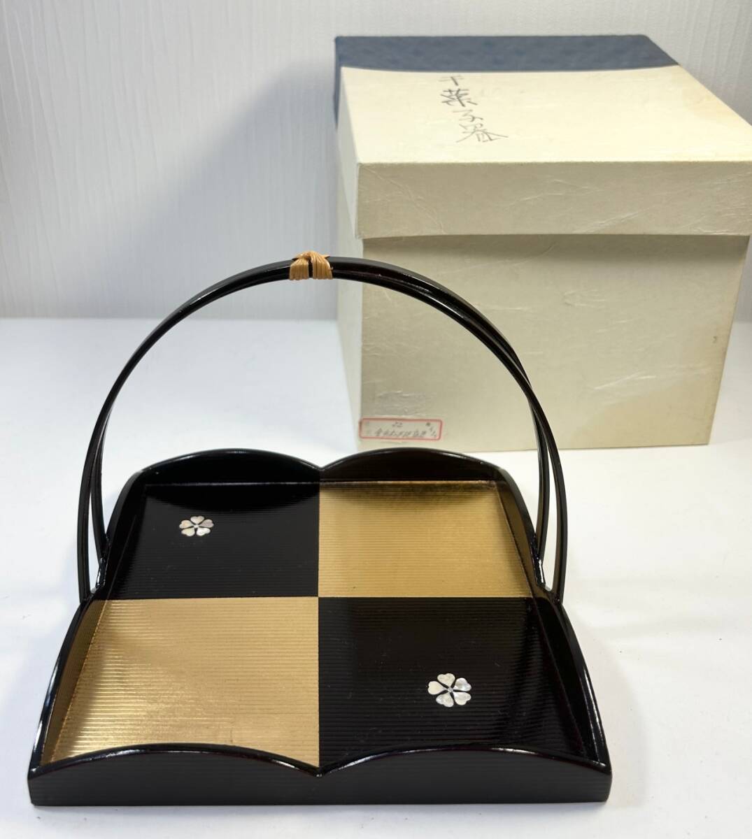 - ☆★☆ 金市松手提盛器 菓子器 茶道 干菓子器 螺鈿細工 金箔 ☆★☆