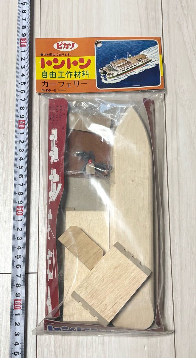 - 昭和レトロ 昭和30〜40年代 「 ピカソ トントン 自由工作材料 ゴム動力 カーフェリー 未開封 」木製組立セット 木製工作 船