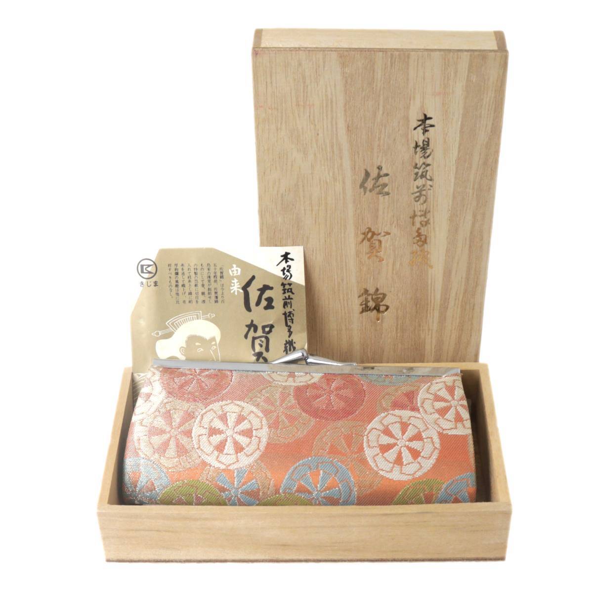 - 佐賀錦 本場筑前博多織 がま口 コインケース 財布 和装小物 オレンジ 桐箱 14×6.3×2.4(cm) NT Bランク