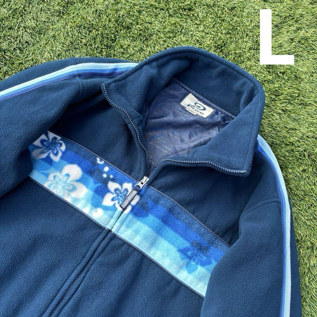 - L 美品 90s 00s 紺 ネイビー OLD PIKO オールド ピコ フリース ジャケット ハイビスカス ハワイアン オールドサーフ ゆるだぼ y2k 古着