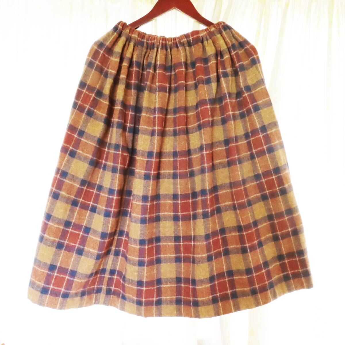 > ブリティッシュ ロング スカート 秋 冬 綿 コットン 100% ツイード タータン チェック M L 作家 ハンドメイド 英国 イギリス