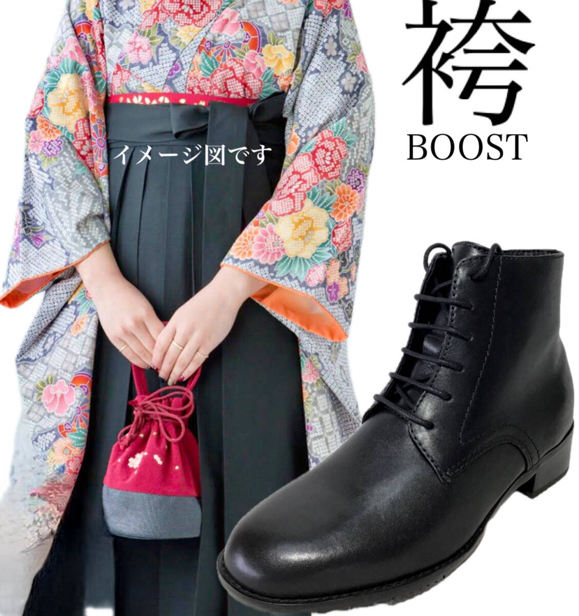 - 袴ブーツ 9104 ブラック 23.5cm 本革 レディース ショートブーツ