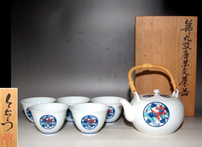 - 人間国宝 十三代今泉今右衛門 錦丸紋唐花茶器 美しい作品☆c147