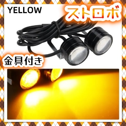 - まわりも光る LED ストロボ ライト 2球 イエロー アンバー 黄色 フラッシュ 点滅 バックランプ ナンバー灯 ジェット 車 バイク 12V 汎用