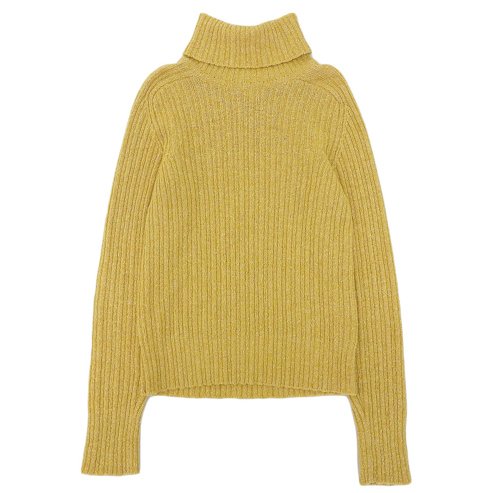 > HERMES エルメス 長袖 ロールネック ニット トップス タートルネック レディース カシミヤ イエロー L ヴィンテージ