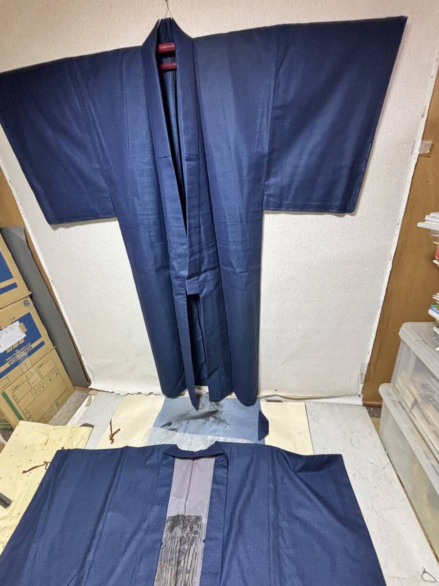- d3351◆しつけ糸付き未使用◆紳士 ウール 亀甲文様 アンサンブル 着物・羽織・袷襦袢◆肩身丈146cm/裄丈66cm/袖幅34cm/袖丈51cm