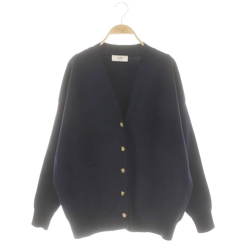 - スローブ イエナ SLOBE IENA ワイドシルエットVネックカーデ カーディガン ニット 長袖 ネイビー /DF ■OS レディース