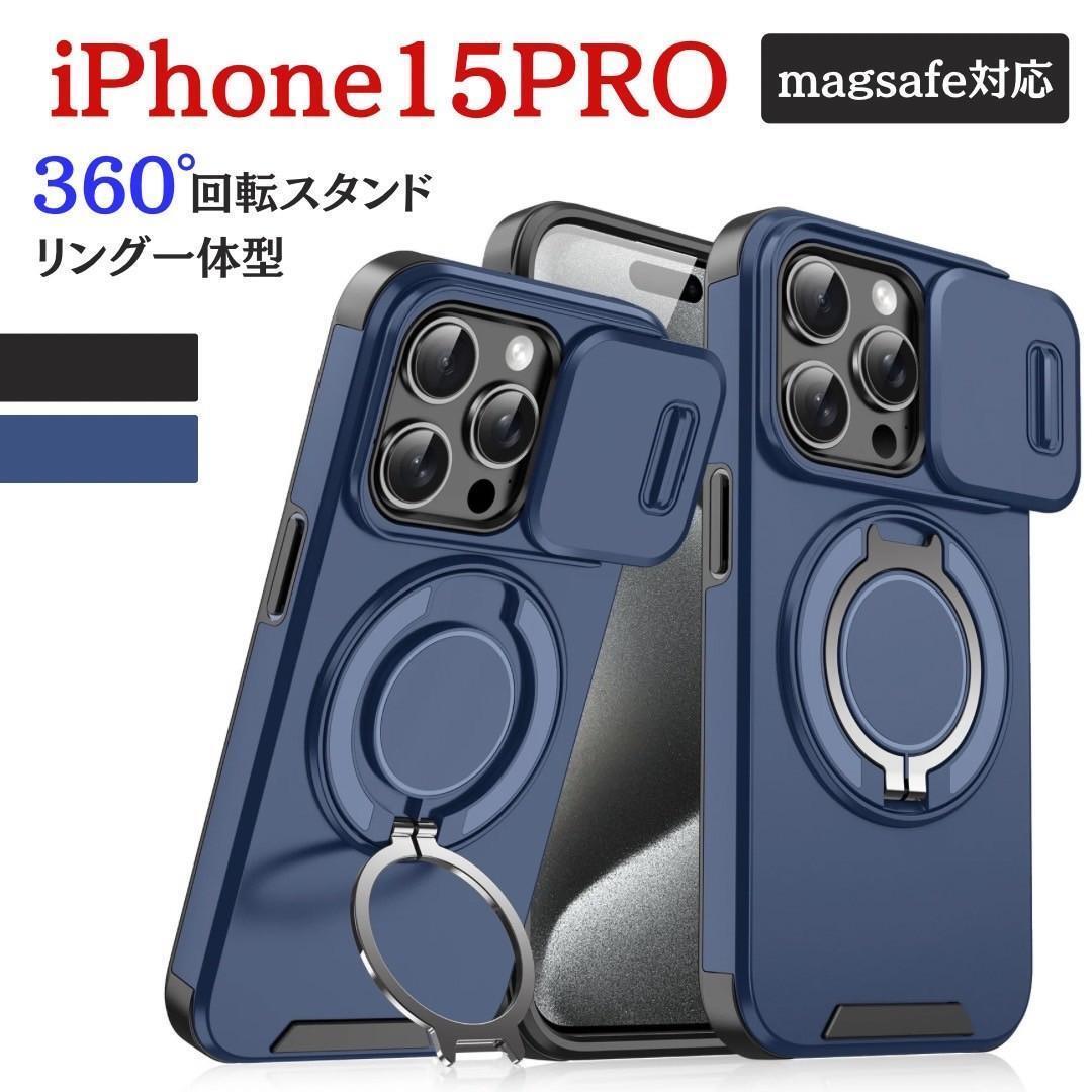 > iPhone15PRO ケース 耐衝撃 スライド レンズ保護 米軍MIL規格 ブルー