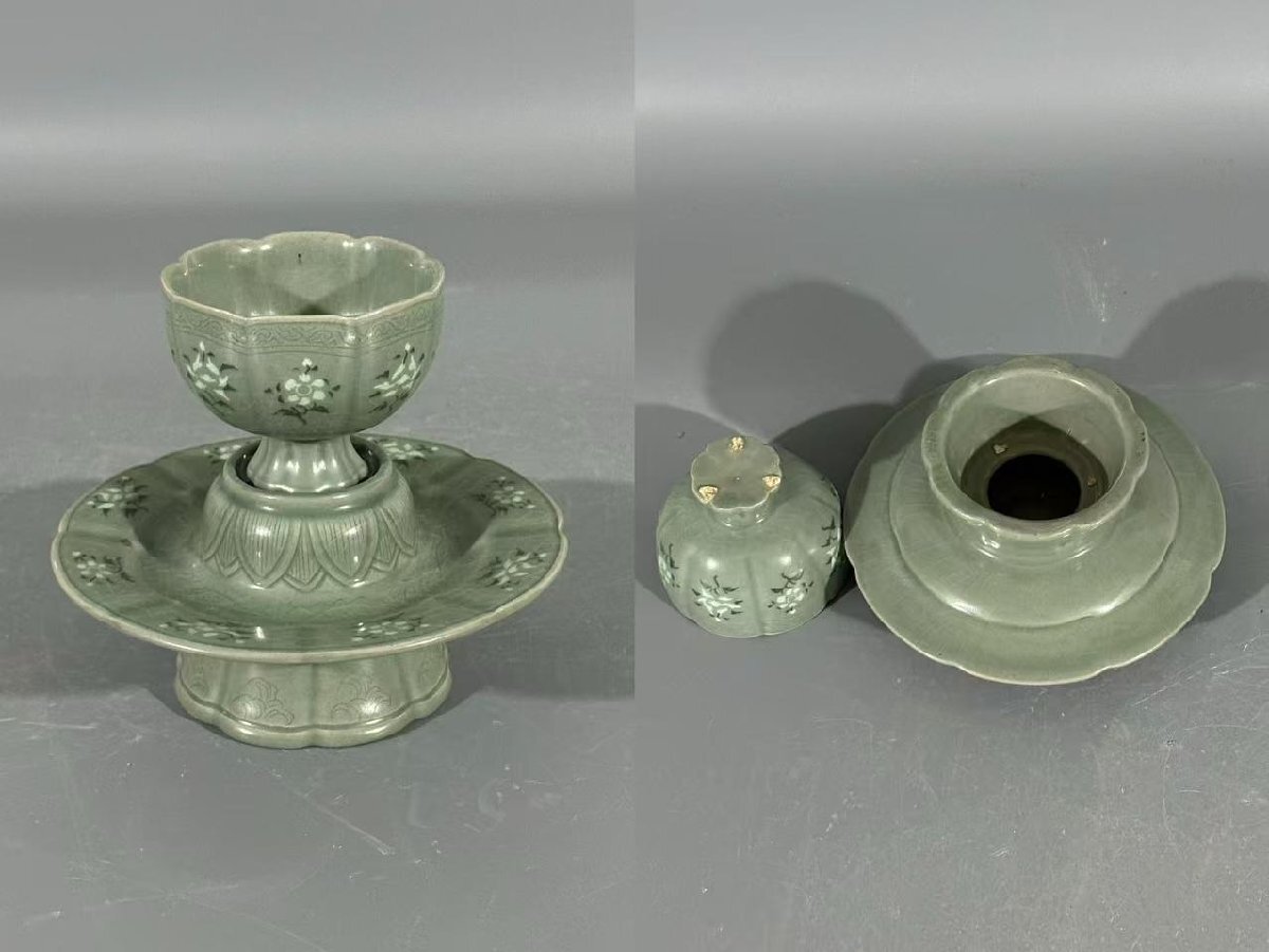 - ■観心・時代旧蔵■B1424『朝鮮時代旧蔵』朝鮮古陶 朝鮮古美術 高麗磁 古高麗 李朝 高麗青磁盞托 高さ14cm