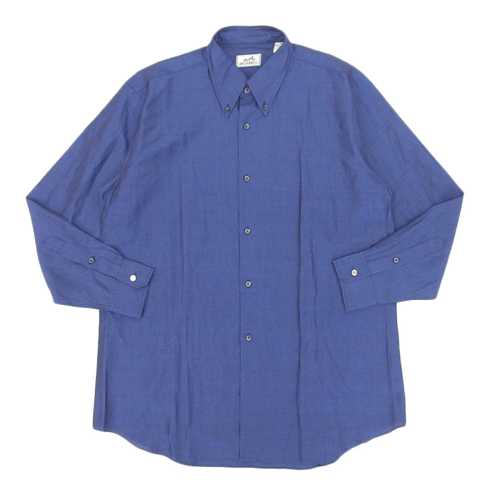 - 美品 HERMES エルメス シャツ 袖セリエボタン トップス メンズ リネンコットン ネイビー 43/17