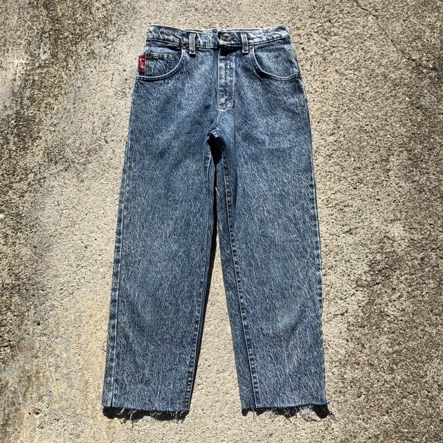 - 【W27-28】80s-90s USA製 Lee カットオフ デニムパンツ ケミカルウォッシュ■ビンテージ オールド アメリカ古着 リー ジーパン クロップド