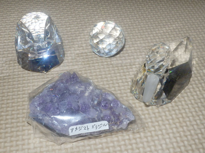 > o13:スワロフスキー アヒル 鳥 ハヤブサの頭 ボール 天然石 アメジスト/クリスタル ガラス インテリア 飾り 置物 コレクション まとめて