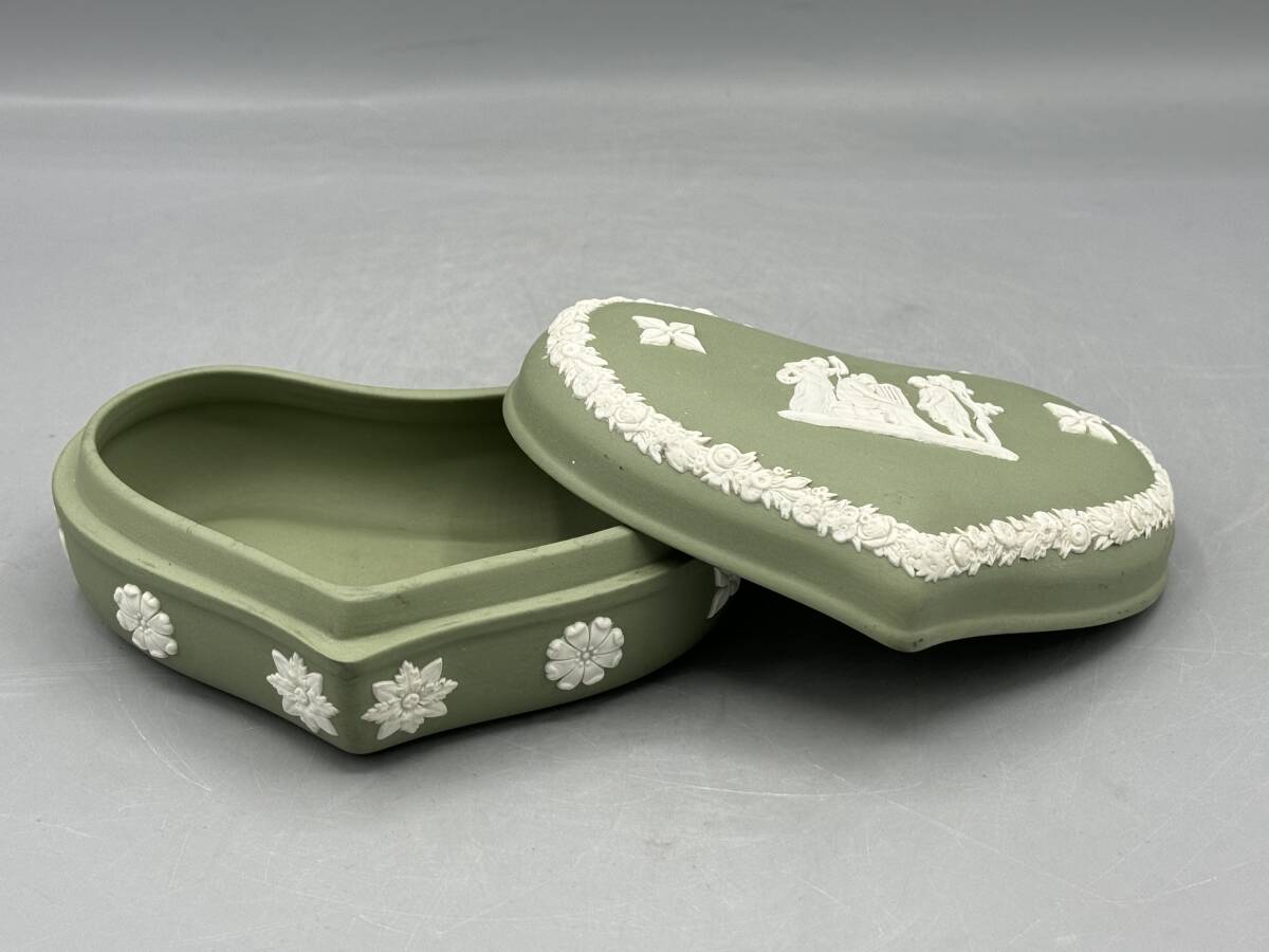 - ウェッジウッド ジャスパー セージグリーン ハート 小物入れ 蓋付 ジャスパーウェア (783)