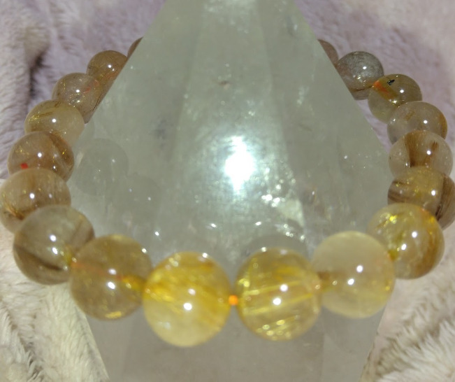 - 黄金 天然ゴールドルチルクォーツ ブレスレット パワーストーン