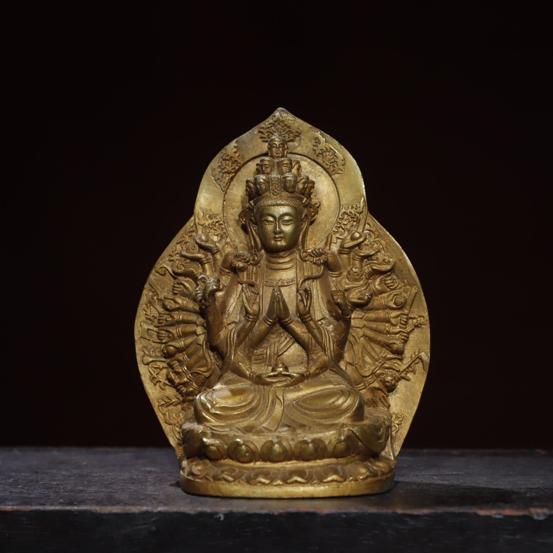 - ▽鴻▽ 銅製 塗金 千手觀音像 置物 古賞物 中国古玩 中国古美術