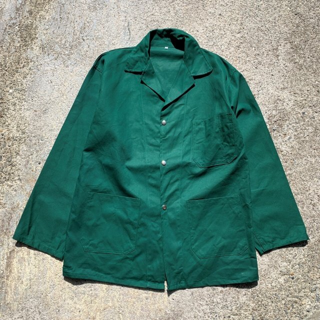 - 【L/XL】UNKNOWN ユーロワーク ショップコート グリーン 緑無地■ビンテージ オールド レトロ ヨーロッパ古着 ラボ カバーオール 綿ポリ