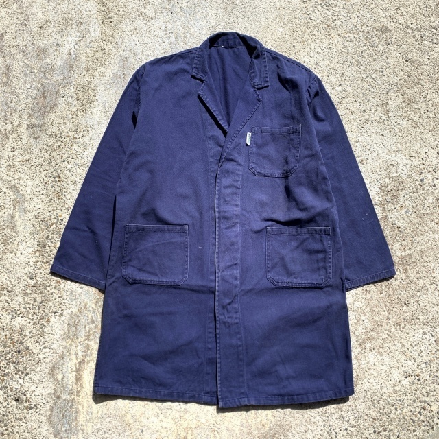 > 【L/XL】Brembo ユーロワーク コットンツイルジャケット ショップコート ネイビー 紺 無地■ビンテージ ヨーロッパ古着 カバーオー