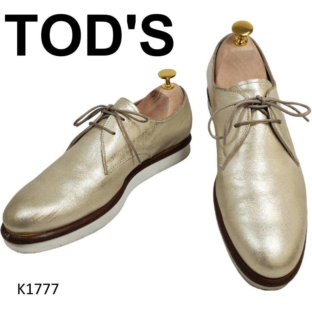 - トッズ プレーントゥ レースアップ シャンパンゴールド オックスフォード 本革