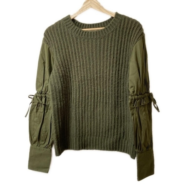 - レキサミ REKISAMI 長袖セーター/ニット サイズ1 S - カーキ レディース クルーネック/異素材切替 トップス