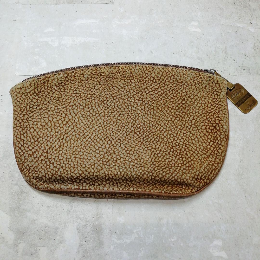 - ボルボネーゼ ポーチ 小物入れ ゴールド スエード レザー うずら柄【b84】
