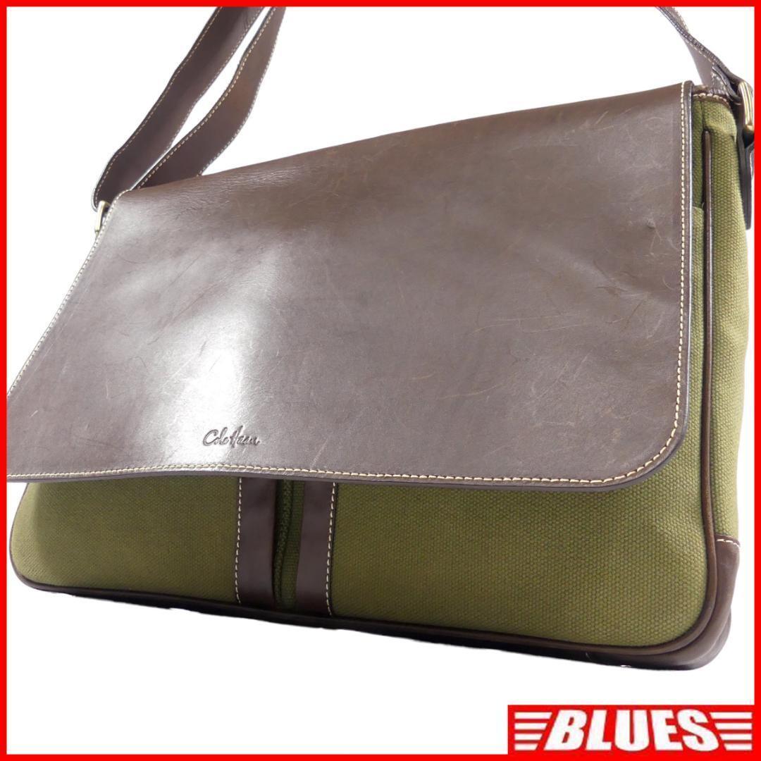 - 即決★COLE HAAN★レザーコンビショルダーバッグ コールハーン メンズ レディース 茶 緑 本革 肩掛けカバン 斜め掛け 本皮