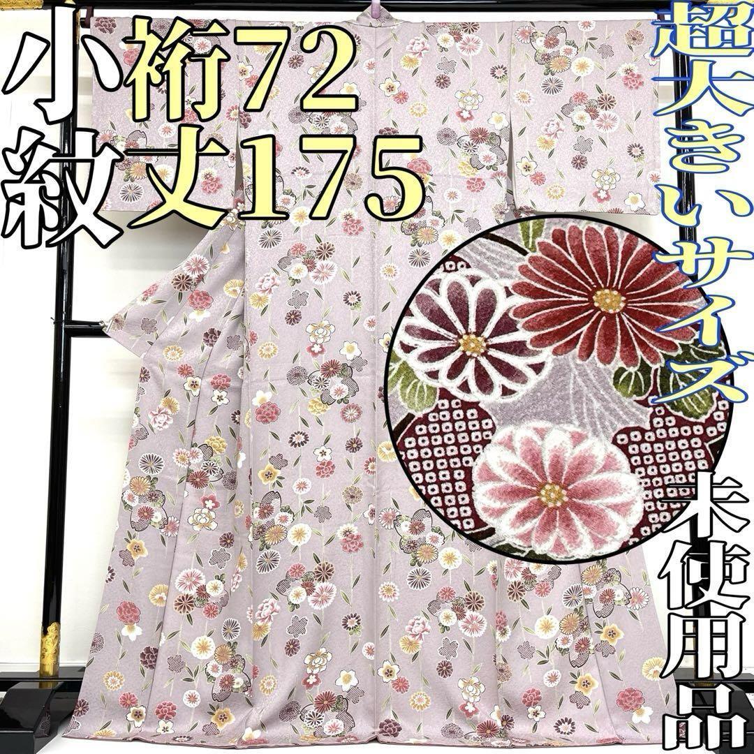 - 【着物と帯 時流】K25346◆正絹 小紋◆超大きいサイズ 裄72丈175