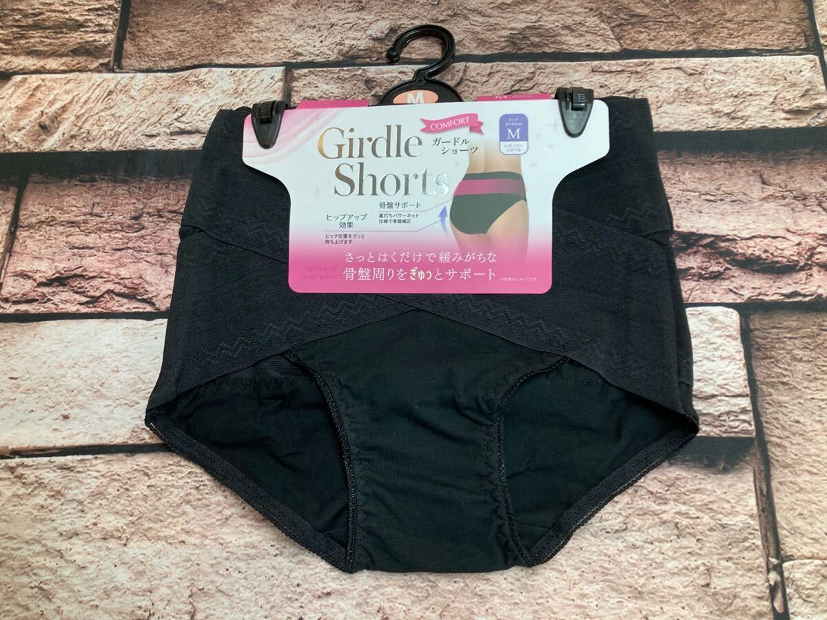 - 送料無料!クロス仕様のゴムベルトで骨盤をしっかりサポート!ベルト付きショーツガードル(ブラック)1枚