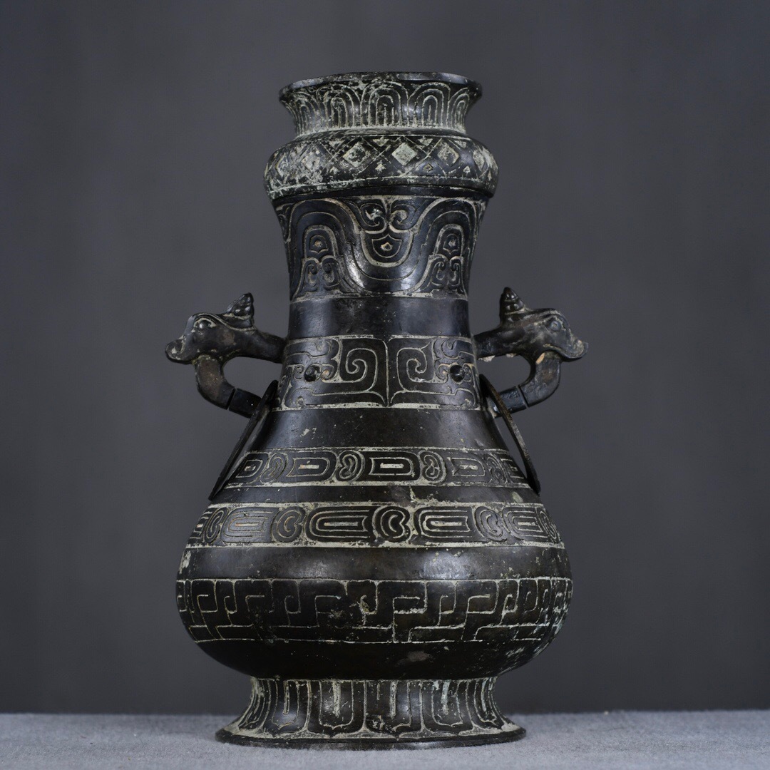 - 『館蔵珍品 戦漢 青銅製 雙獣耳壺』置物 賞物 貴重物品 収蔵品 中国古美術