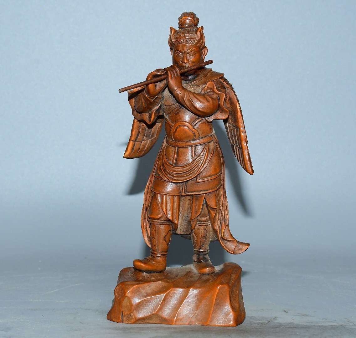 - ▽鴻▽ 黄楊木製 細密彫 雷震子 置物 古賞物 中国古玩 中国古美術