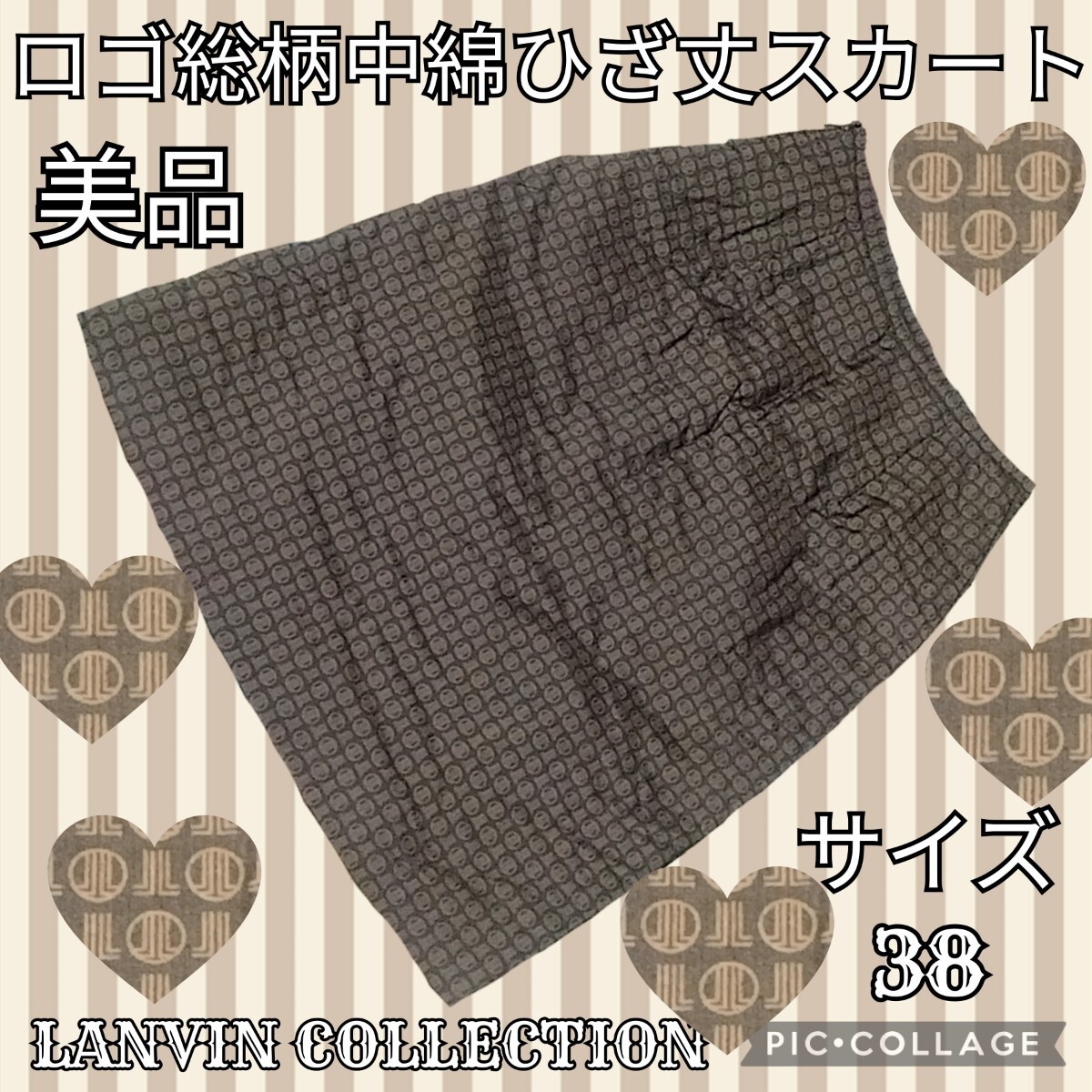 > 美品★ランバンコレクション★ロゴ★ひざ丈スカート★中綿★LANVIN★ブラウン★茶色★総柄★タイトスカート★秋冬★総ロゴ★希少デザイン
