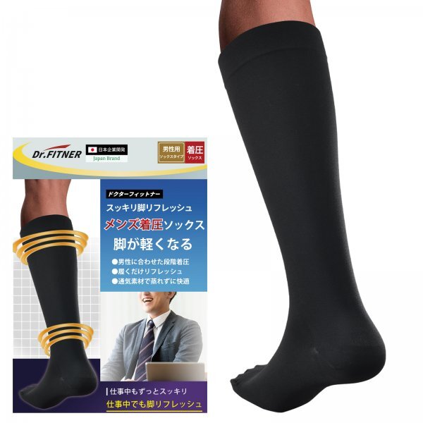 > 【Dr.FITNER】着圧ソックス 理学療法士推奨 メンズ 弾性ソックス ビジネスソックス 男性用 加圧ソックス 靴下 ブラック 黒 Lサイズ 22