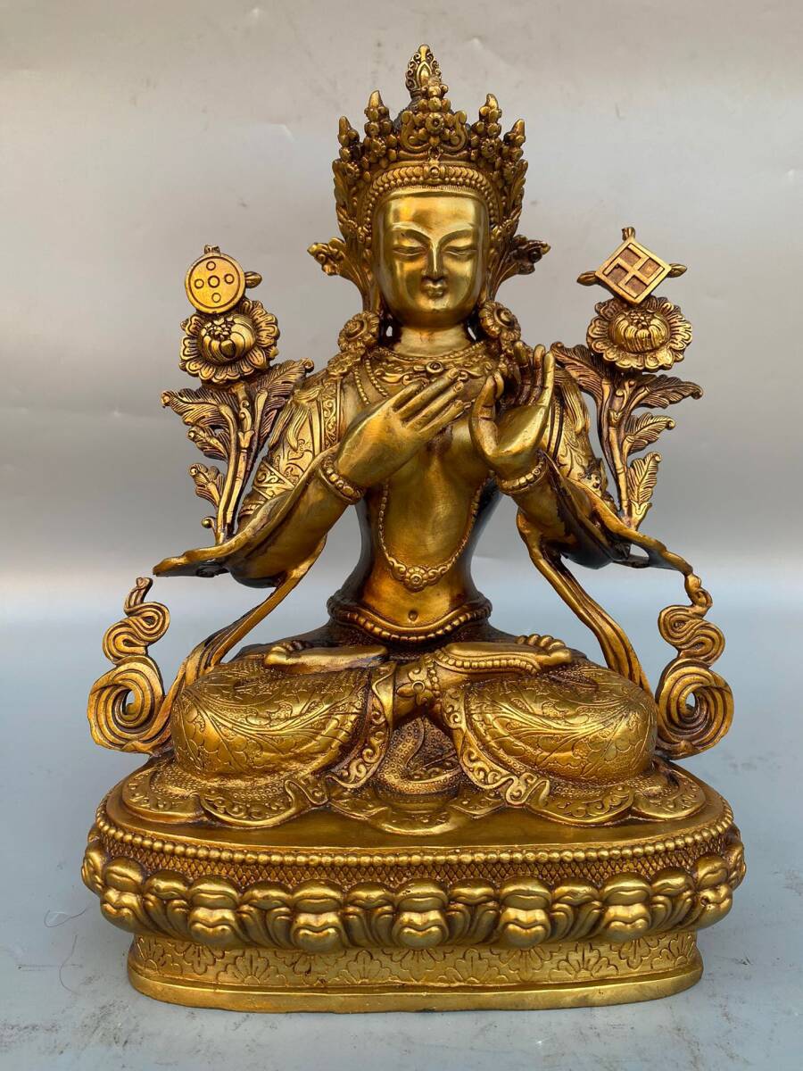 - 【仁】『銅製・塗金・度母菩薩像・仏教古美術・供養品』極細工 古賞物 中国古玩 古美術 古美味