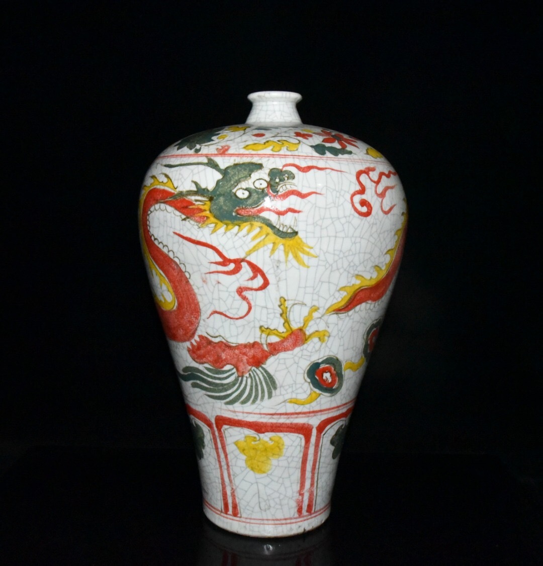 - 【仁】『宋・古陶瓷品・五彩・開片・龍紋・梅瓶』極細工 古賞物 中国古玩 古美術 古美味
