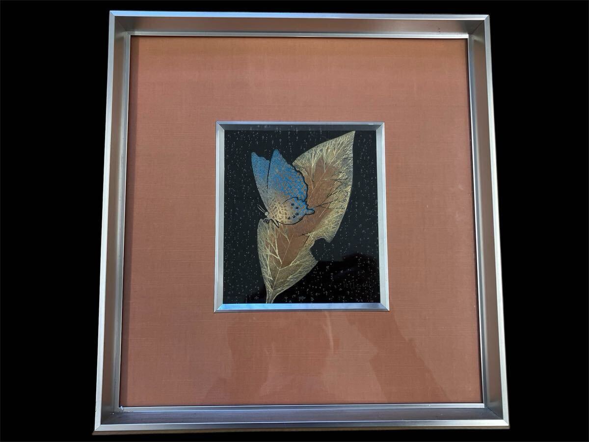 - 吠木正樹 輪島塗 沈金蒔絵 蝶々 額装 31×29