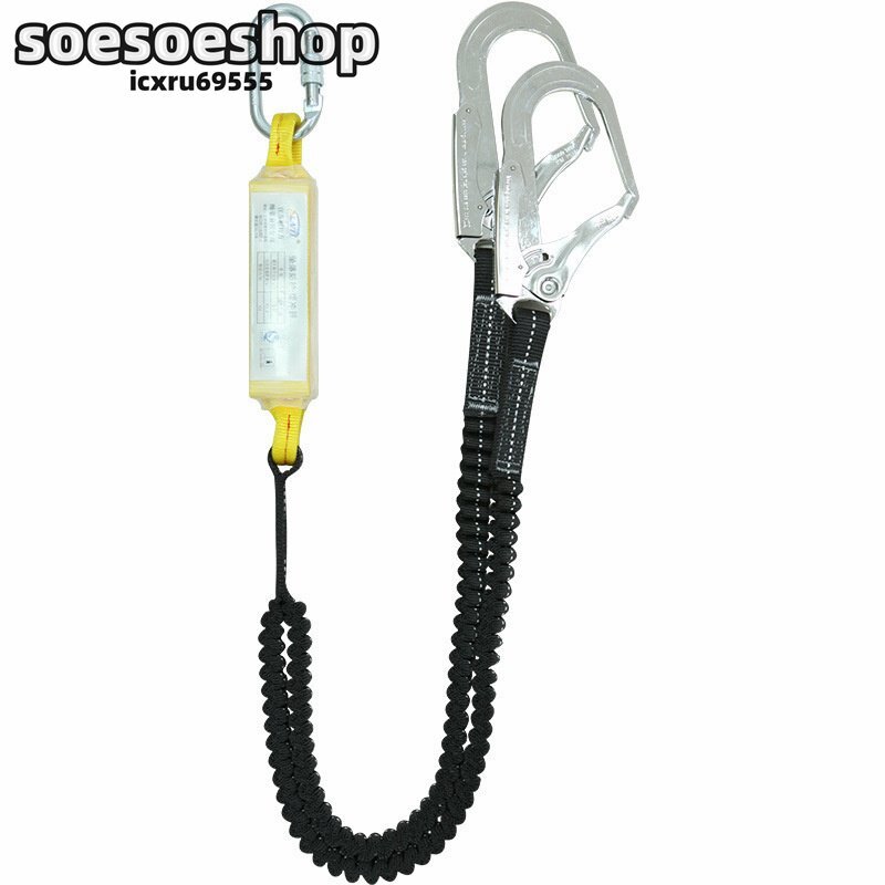 - フルハーネス型用 2丁掛けタイプ ランヤード ダブルランヤード 伸縮 蛇腹式ロープ フック 1.4-1.9m 安全帯用 一般作業用