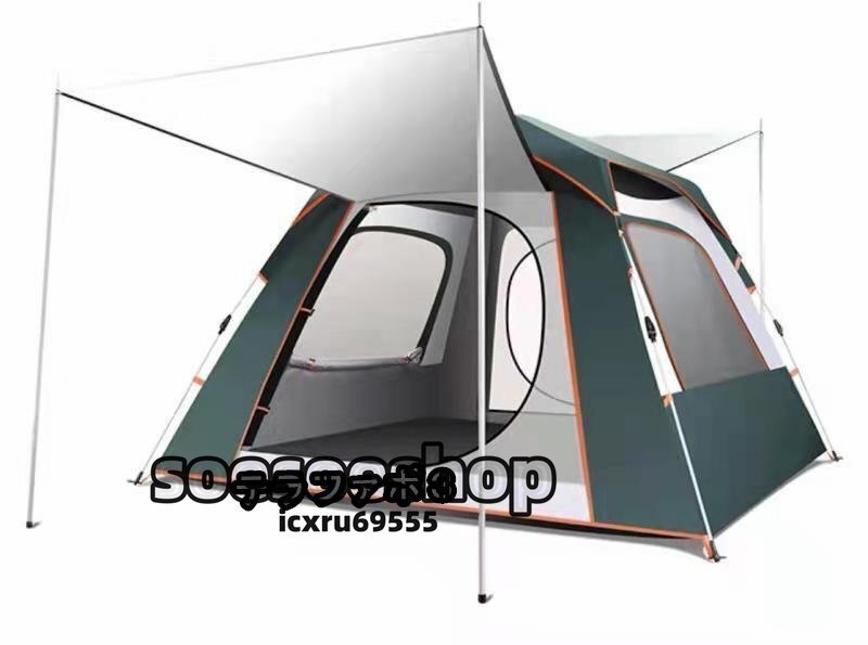 - ワンタッチテント 自動式テント 3-4人用 軽量 キャンプ ドーム型 雨よけ 日よけ 蚊よけ 紫外線防止 アウトドア メッシュ通気 防水 グリーン