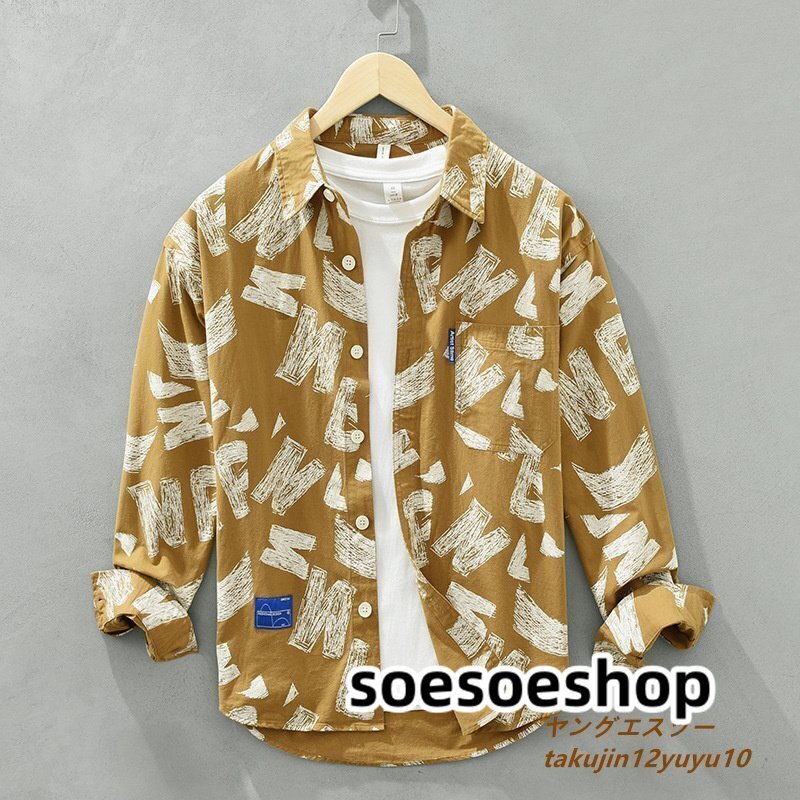 - 秋新品 メンズシャツ 長袖シャツ 新品 アロハシャツ ワイシャツ 総柄 シャツ ヴィンテージ カジュアル 柔らか 心地良し イエロー L