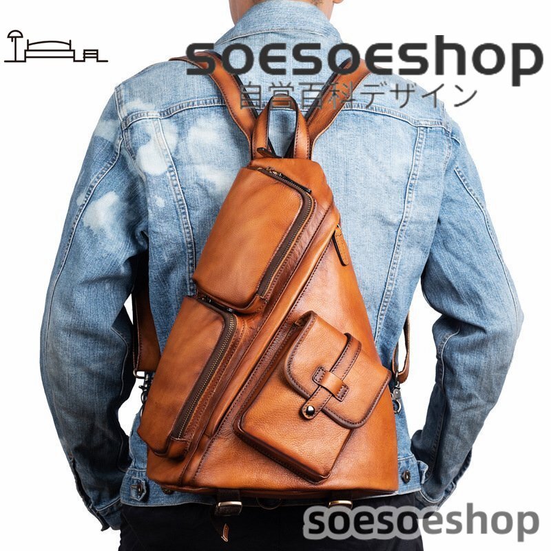 - メンズ 本革 ボディバック 男性 ワンショルダーバッグ 斜め掛けバッグ レザー 大容量 通勤通学