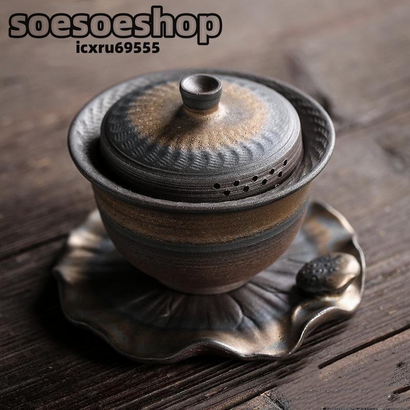 - 職人手作り 蓋付茶器 茶托付 金鉄釉 携帯式 軽量 茶具セット 茶道 中国茶道具 工夫茶 湯呑み 贈り物 お礼 来客