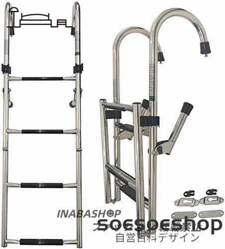 - 4ステップラダーマリンボート折りたたみ式ステンレスラダー ィングラダーダウンヨットボート船ラダーインボードスイムプラットフォーム