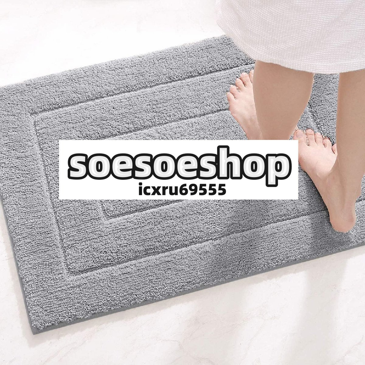 - バスマット お風呂マット 玄関マット 吸水 速乾 丸洗い ふわふわ マイクロファイバー 浴室 キッチン ライトグレー 40x60cm